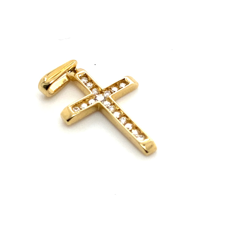 14K Yellow Gold Channel-Set Diamond Cross Pendant