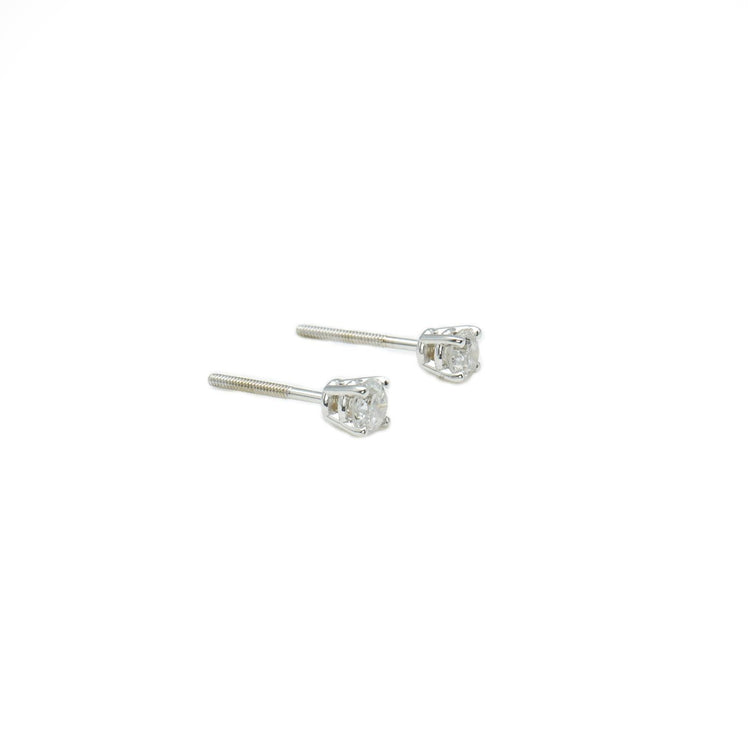 These elegant 14K white gold diamond studs are the perfect embodiment of timeless beauty. Featuring a total of 0.52ct of dazzling diamonds, each stud showcases a single diamond securely set in a classic 4-prong cocktail setting, allowing the brilliance of the stones to take center stage. The diamonds, graded G color and VS2 clarity, sparkle with exceptional fire and clarity, making these earrings an exquisite choice for everyday wear or special occasions.