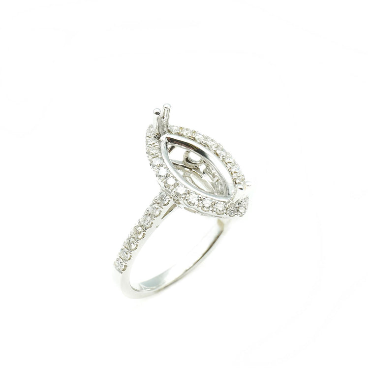 18K White Gold Diamond Oval Halo Semi-Mount Ring