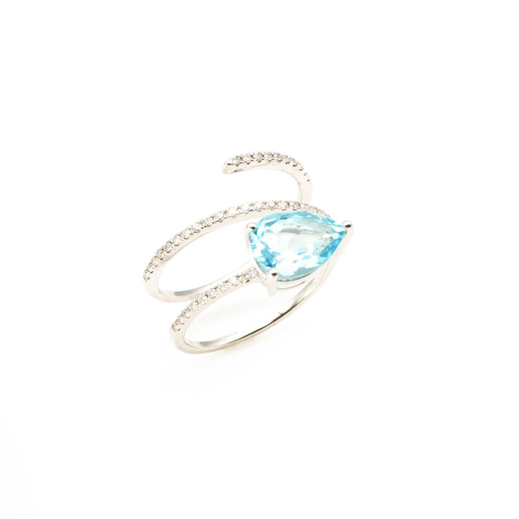 Lady's W/G 14K L/Dbluetopaz/R Fashion Ring With 0.30Tw Round Diamonds And 2.50Tw Pear Precious Topazs 14K W/G