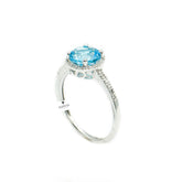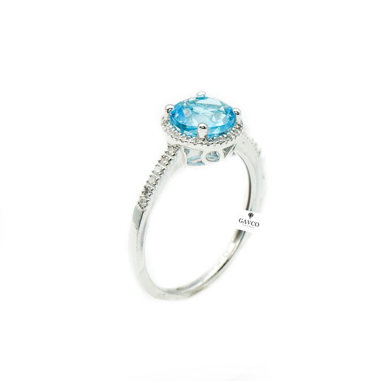 14K White Gold Blue Topaz and Diamond Halo Ring