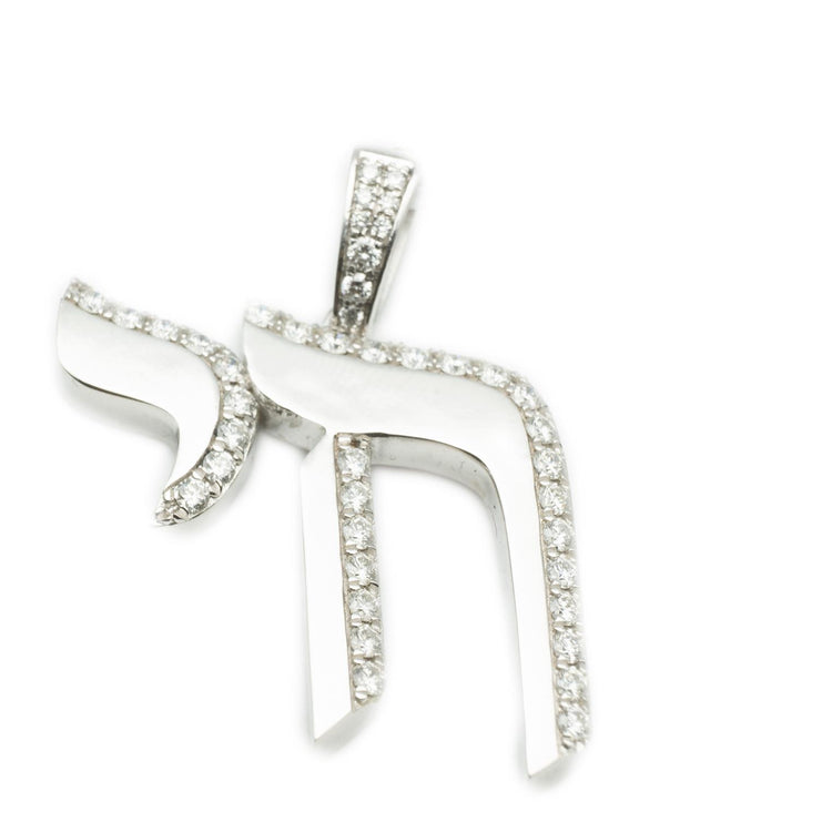 Celebrate life and faith with this exquisite 14K white gold diamond Chai pendant. Handcrafted by skilled jewelers, this timeless piece is adorned with 1.25ct of round-cut F color diamonds, meticulously set in a micro pave design to create a radiant sparkle. The elegant craftsmanship highlights the symbolic Chai, making it a meaningful and stylish addition to your jewelry collection. Perfect for any occasion, this pendant beautifully combines tradition with luxury.
