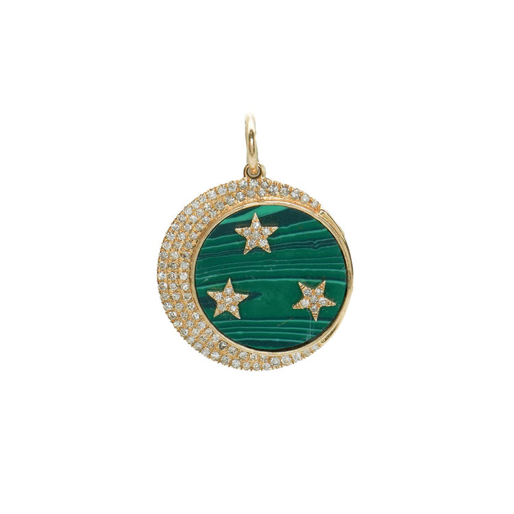Lady's Yellow 14 Karat D/Green/Enamel/Cresent/Moon/Stars Pendant With 0.40Tw Round Diamonds