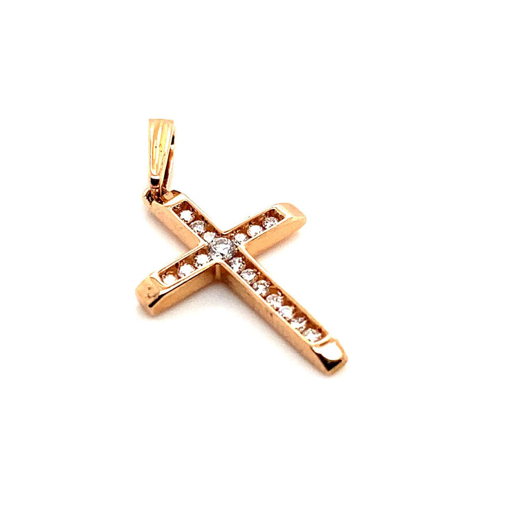 14K Rose Gold Channel-Set Diamond Cross Pendant
