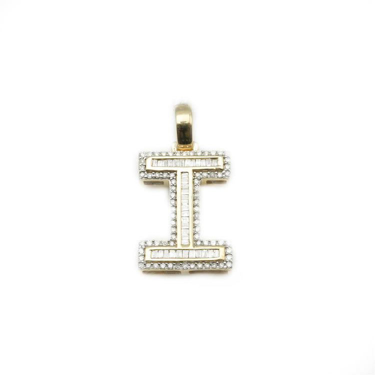 This elegant 14K yellow gold "I" pendant is a refined masterpiece, featuring a sophisticated combination of round and baguette diamonds. The pendant is adorned with 0.40ct of G color, VS2 clarity diamonds, thoughtfully arranged to maximize brilliance and style.