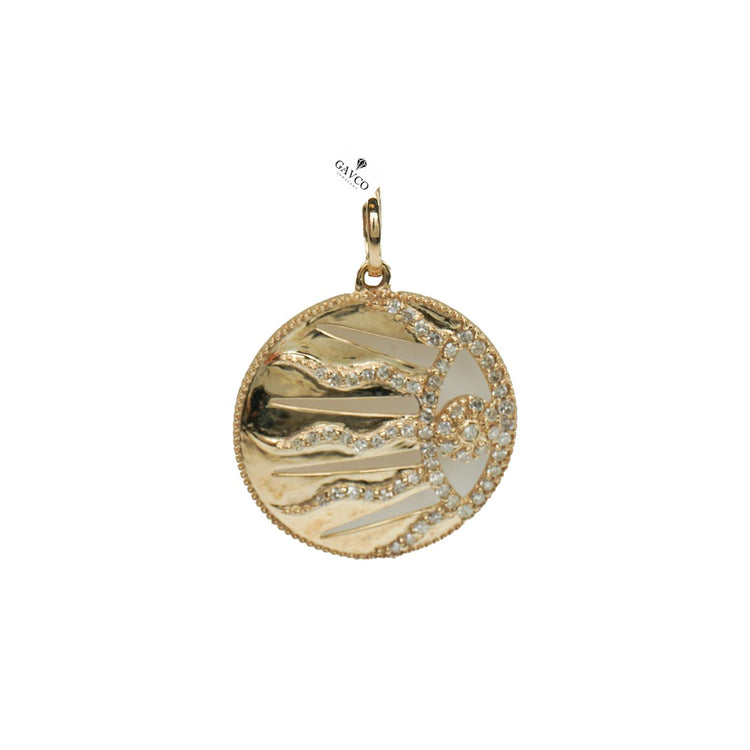 4K Yellow Gold Evil Eye Circle Pendant with Diamond Accents