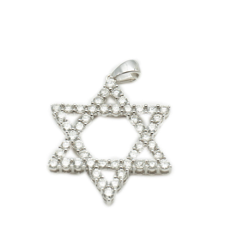 18K White Gold Diamond Star of David Pendant