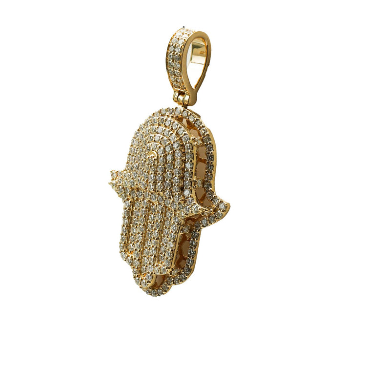 14K Yellow Gold Diamond Floating Hamsa Pendant