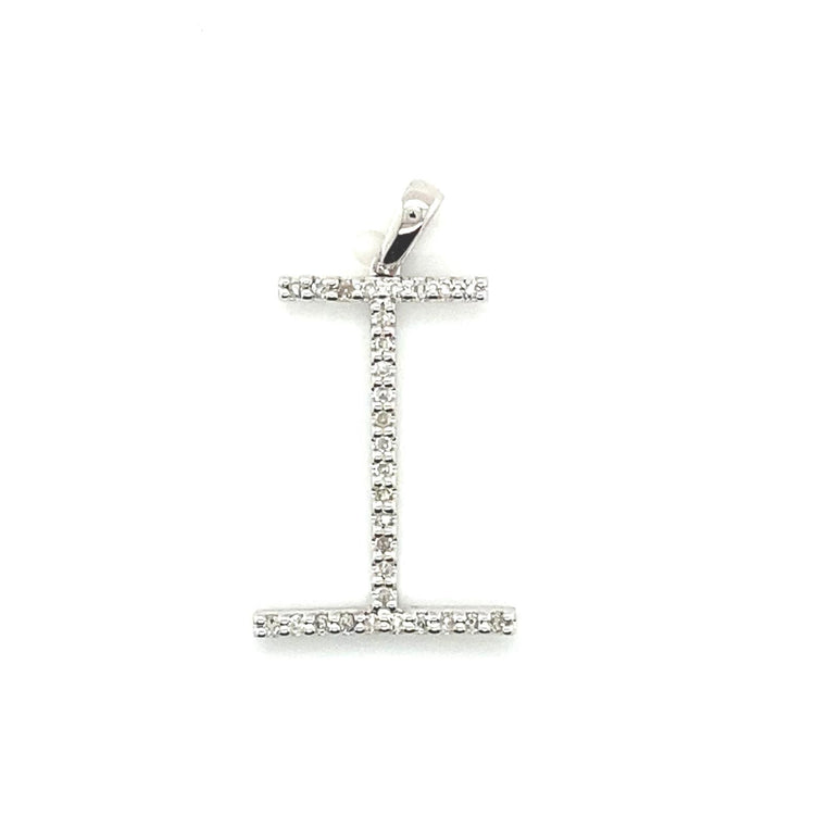 Add a touch of elegance and individuality to your jewelry collection with this 14K white gold "I" pendant. Featuring a row of shimmering round-cut diamonds in a shared prong setting, this sleek and stylish pendant is a perfect representation of timeless beauty.