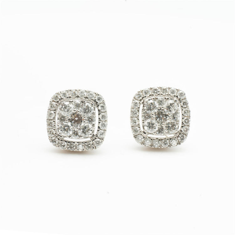 Lady's W/G 14K D/Square/Cluster/Stud Earrings With 1.25Tw Round G/H Si1 Diamonds 14K W/G