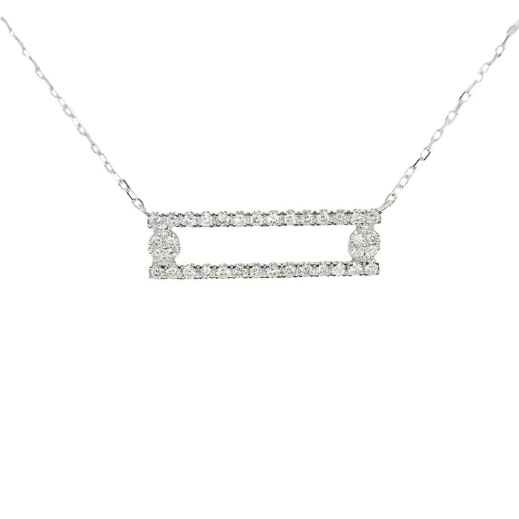 14K White Gold Double Bar Diamond Cluster Pendant Necklace