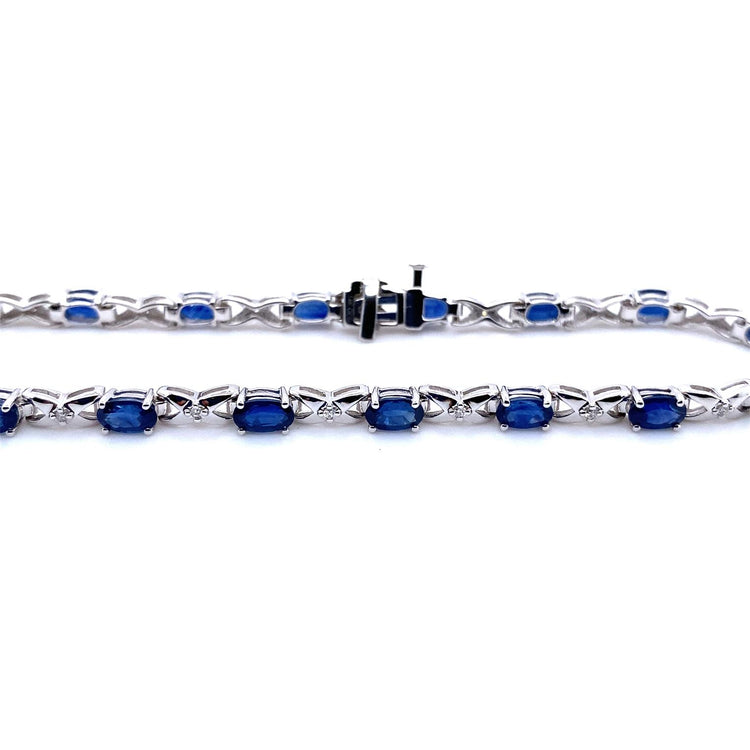 14K White Gold Oval Sapphire and Diamond Infinity Tennis Bracelet