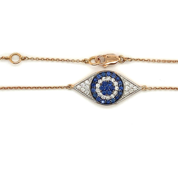 Lady's R/G 14K L/D/Sapphire/Eye/Brac Bracelet With 0.30Tw Round Diamonds And 0.40Tw Round Sapphires The perfect piece of jewelry to match your graceful personality, this enchanting bracelet is the right pick for you. Crafted of 14K rose gold for a lustrous finish, the magnificent sapphire eye design of this dazzling bracelet stands out owing to the radiant round cut Diamonds and round cut Sapphires around it!
