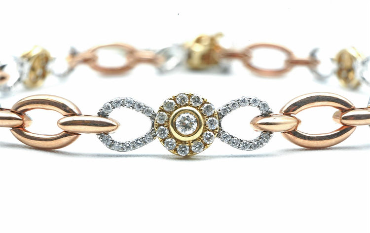 14K Tri-Color Gold Infinity Link Diamond Bracelet