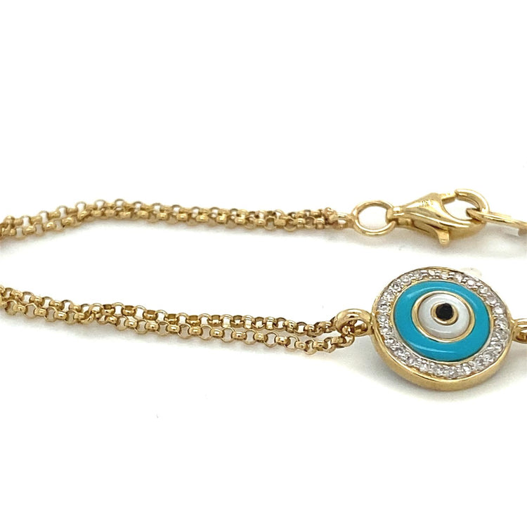 14K Yellow Gold Diamond and Turquoise Evil Eye Bracelet