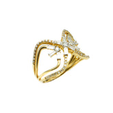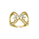 Design: Open-style cocktail ring with starburst cluster and diamond-accented bands