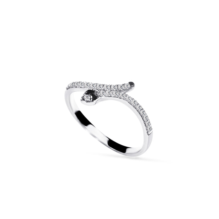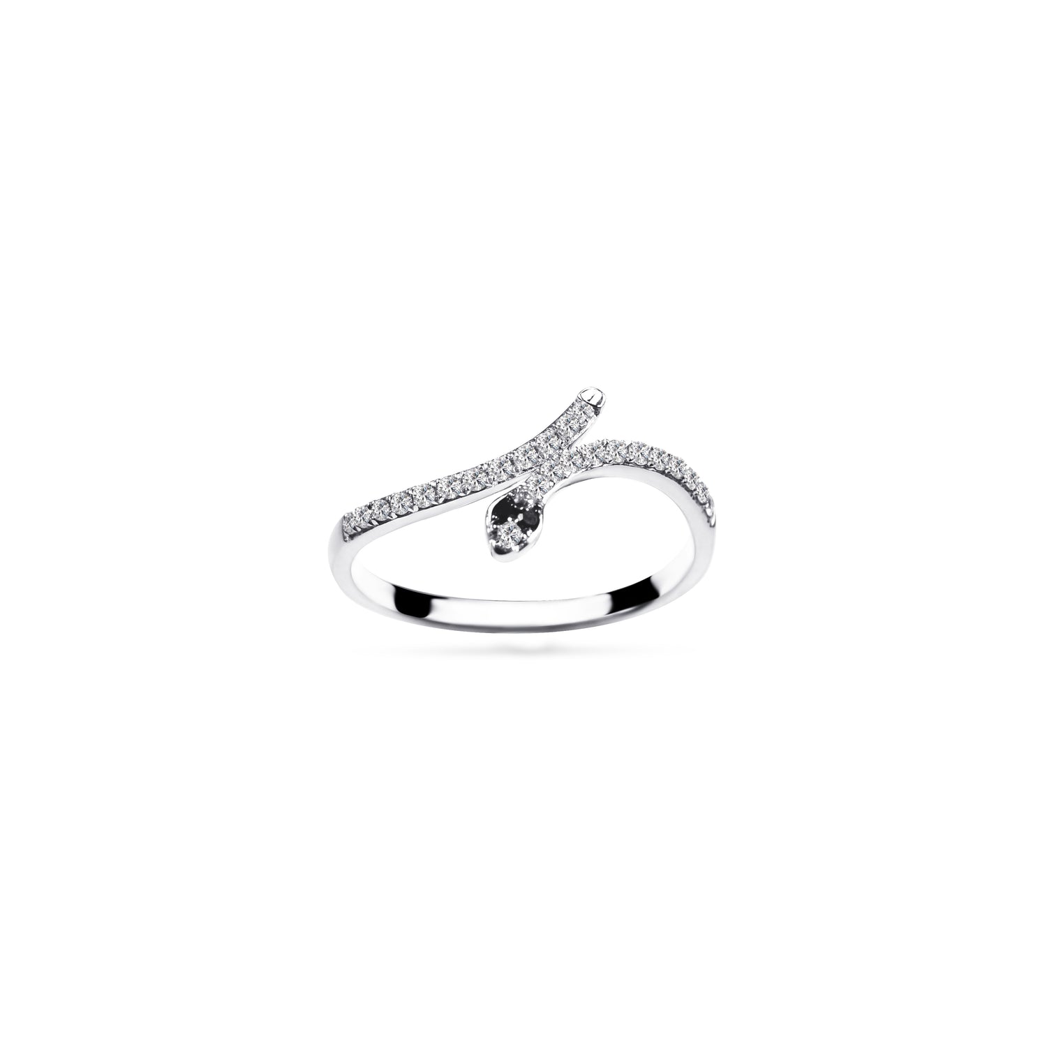 Description: Embrace bold sophistication with this exquisite 14K White Gold Snake Fashion Ring, featuring 0.26ct total weight of round brilliant diamonds in a shimmering pavé setting. A sleek and modern design, this ring showcases a mesmerizing black sapphire accent as the snake’s eye, adding a captivating contrast against the radiant white gold. Crafted to perfection, this serpentine-inspired piece symbolizes strength, transformation, and elegance, making it the perfect statement ring for any occasion.