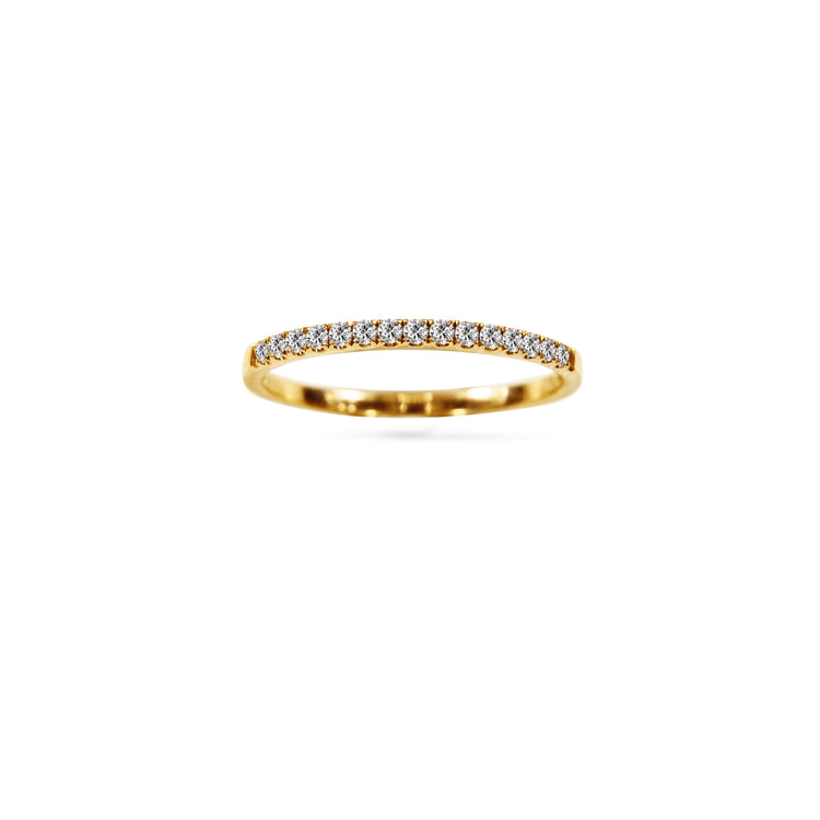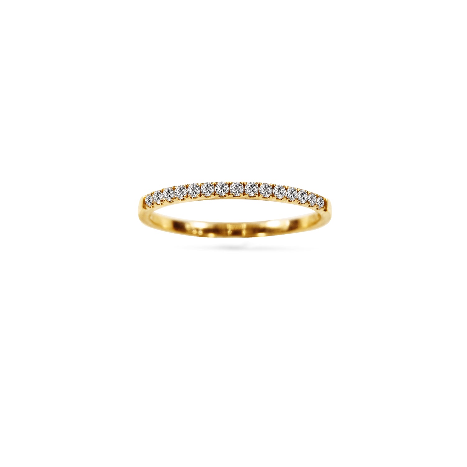 Celebrate eternal love with this stunning 14K yellow gold diamond wedding band, featuring 0.20ct of round-cut diamonds in a dazzling pavé setting. Each diamond is meticulously set along the band, creating a continuous sparkle that enhances its timeless elegance.